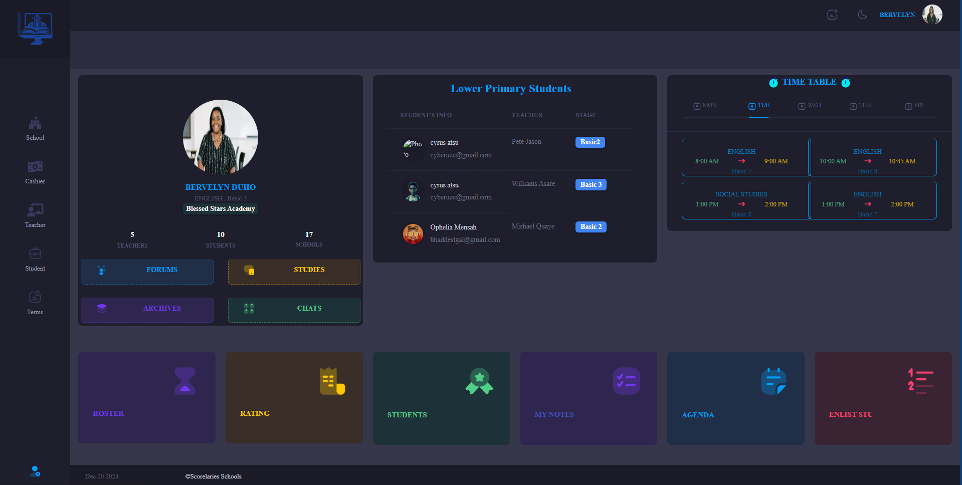 Overall, Scorelaries feels like a modern solution for school management. It’s accessible, efficient, and genuinely makes my school experience better. I highly recommend it to students looking for a streamlined way to stay on top of their academics and extracurriculars.